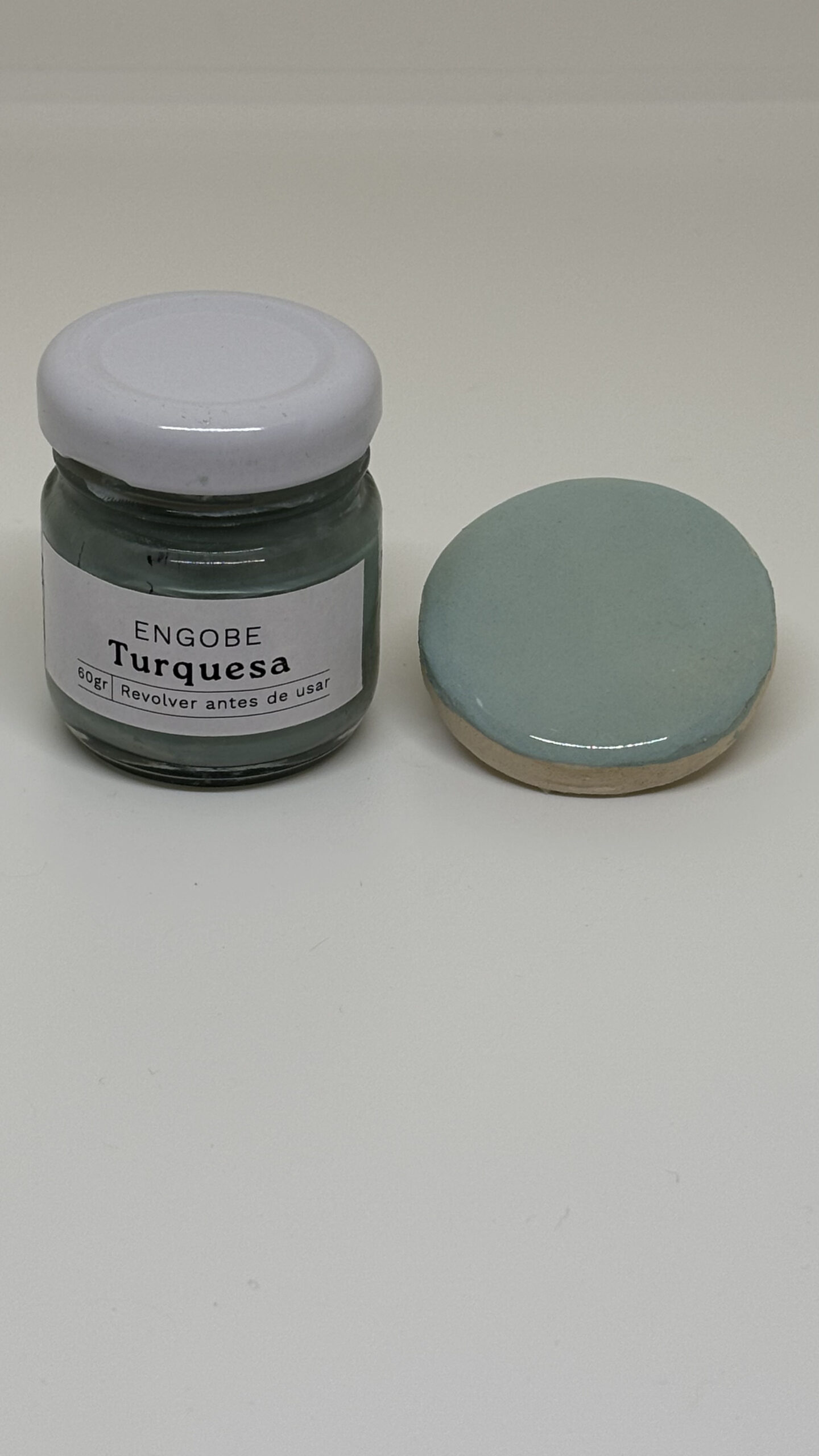 Engobe turquesa – Presentacion en 60/100/200 gr / Nota: Para preservar el envío, el producto se despachará en recipientes plásticos.
